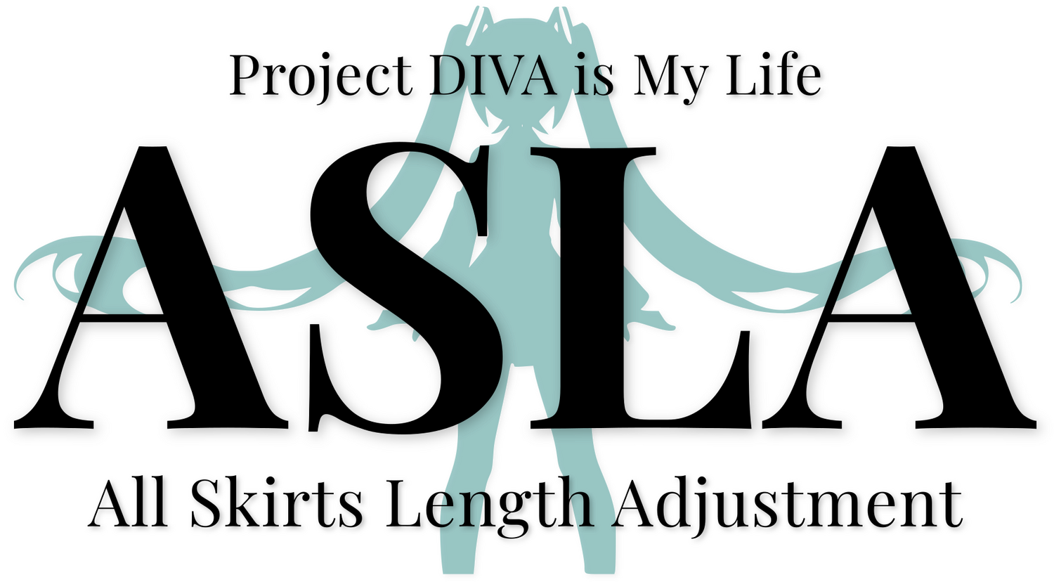 ASLA is a large-scale mod that adjusts the skirt length of ALL skirt-type modules in Hatsune Miku: Project DIVA Mega Mix+, covering a total of 233 modules!ASLAは、初音ミク Project DIVA MEGA39's+ に登場する「すべてのスカート系モジュール」(233種類!)を再定義した大型Modです。